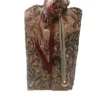 - Detalles: Piel en color marrón y pañuelo estampado