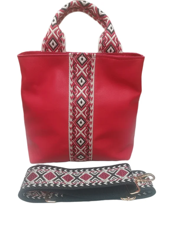Con unas dimensiones de 23 cm de largo, 10 cm de ancho y 24 cm de alto, el bolso «Roma» ofrece el espacio perfecto para llevar tus imprescindibles diarios con organización y un toque de energía. Su diseño tote, con líneas limpias y una silueta estructurada, se adapta a cualquier ocasión, desde una jornada dinámica hasta momentos de ocio llenos de vida. Los detalles en tejido con un patrón geométrico en tonos rojos, blancos y negros aportan un contraste moderno y llamativo.